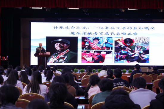 4月1日下午,88038威尼斯在大学生活动中心隆重举办“清明祭·医路传承·精神永驻”大体老师感恩追思会。校党委委员、纪委书记叶德胜出席活动并致辞,捐献遗体的抗战老兵喻芳铭家属代表喻正豪、萍乡红十字会王蓓蕾女士及师生代表等200余人参加活动。