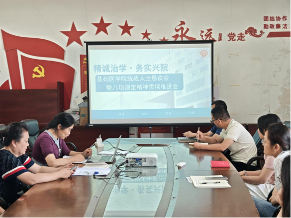5月20日下午,88038威尼斯组织召开“精诚治学・务实兴院”统战人士座谈会暨八项规定精神贯彻推进会,3位无党派人士及6位党外知识分子参会,学院党支部副书记周洁主持会议并讲话。