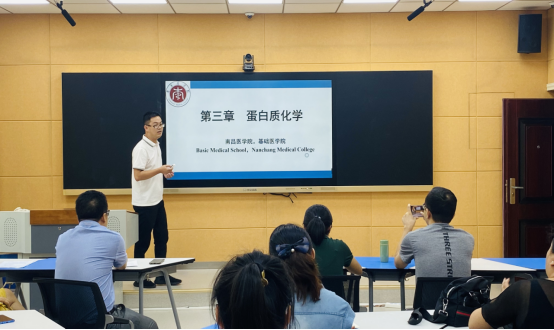 4位新教师先后分别从《生物化学》《医学免疫学与病原生物学》《病理学》等课程的相关章节进行了试讲授课。王旺老师讲授“蛋白质化学”条理清晰,重点突出,教态活泼;高小敏老师讲授“细胞和组织的修复”教学设计合理,严谨端庄,教态优雅;胡九龙老师讲授“抗体的结构与功能”课件形象丰富,紧扣科研前沿,深入浅出;宋晓静老师讲授“细胞和组织的适应”课件精美,知识功底扎实,语言落落大方。